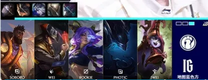 IG选用:Soboro奎桑提,Wei梦魇,Rookie卡牌,Photic芸阿娜,Jwei璐璐
